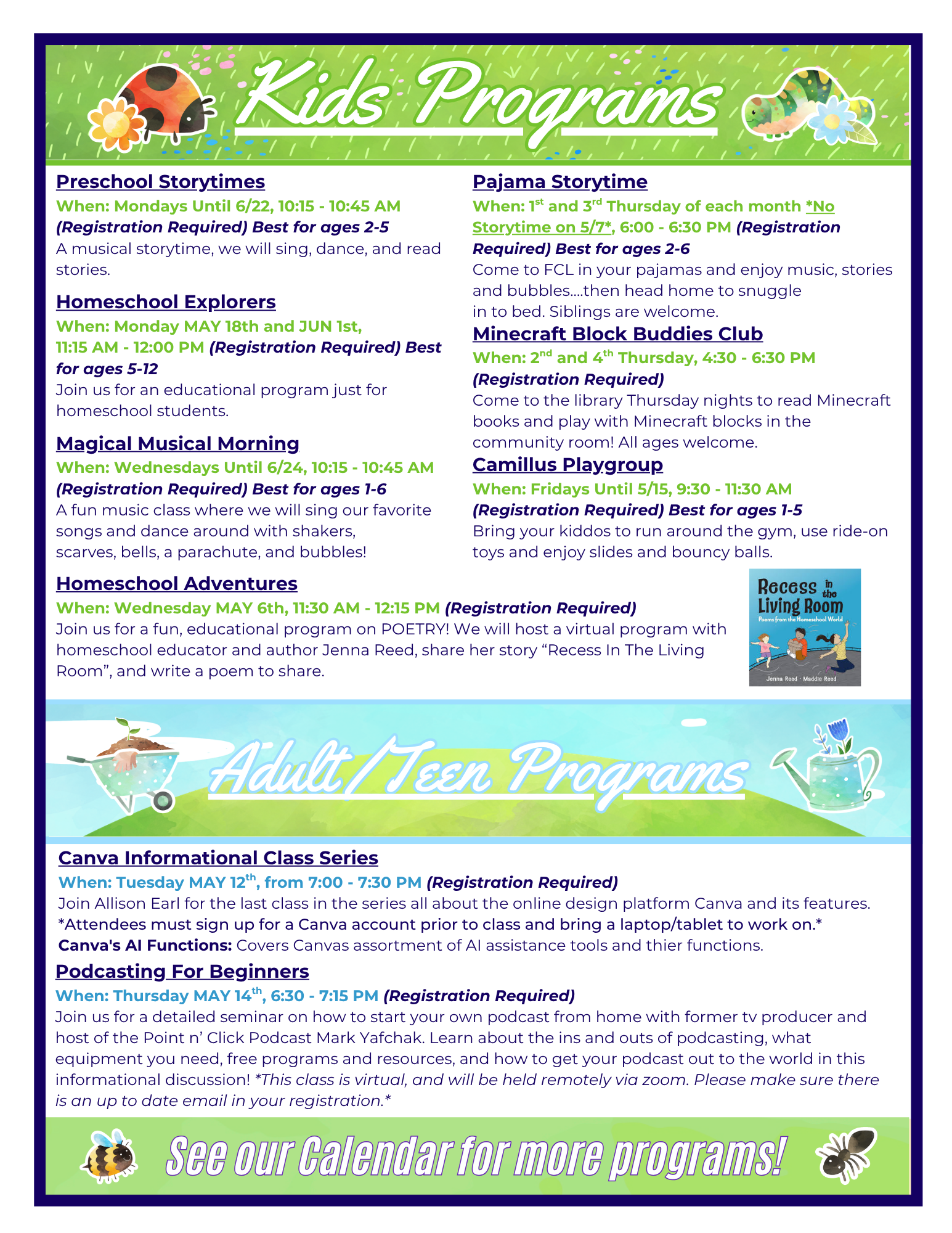 Join us each month for fun, STEM focused activities. Register on our calendar or download the program materials above!